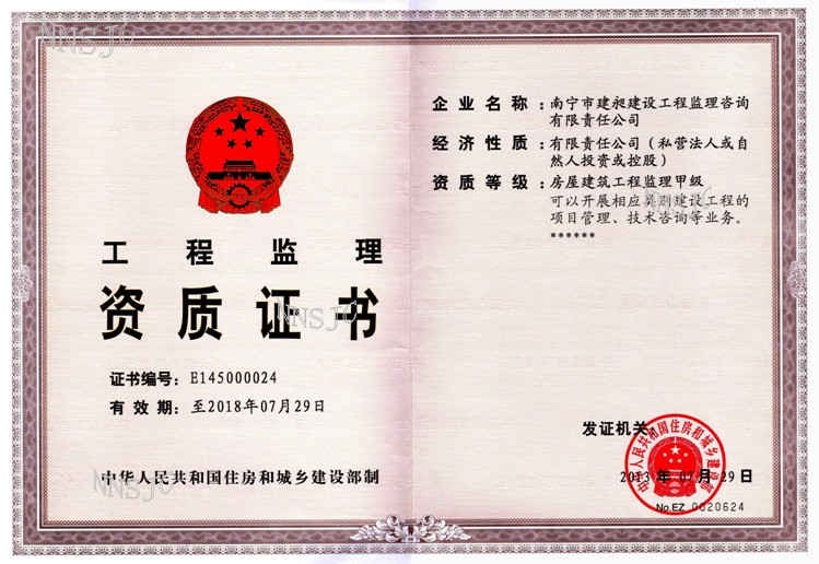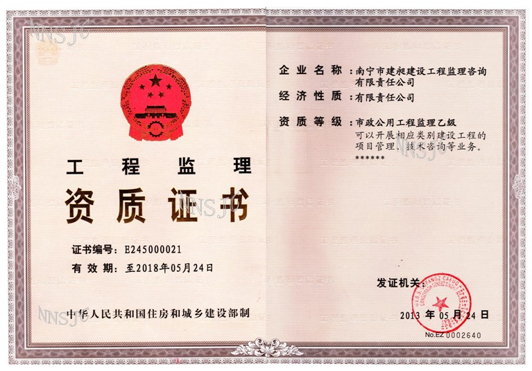 公司名稱:南寧市建昶建設工程監理咨詢有限責任公司