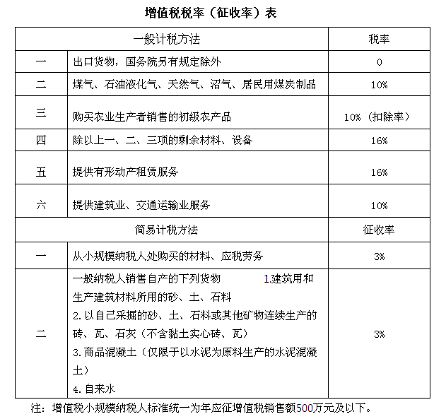 一、納稅人發生增值稅應稅銷售行為或者進口貨物,原適用17%和11%稅率的,稅率分別調整為16%、10%。